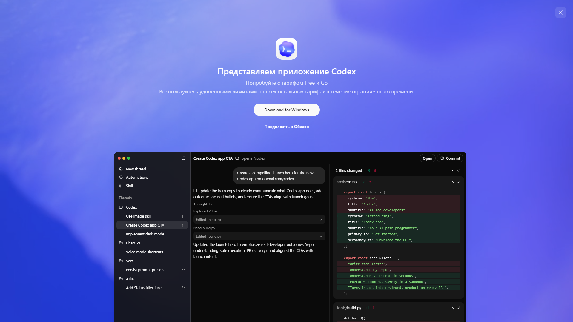 OpenAI выпустила Codex App для Windows — приложение для разработки с AI-агентами
